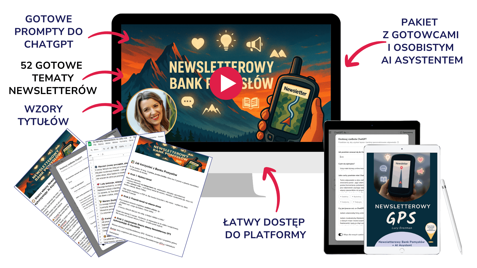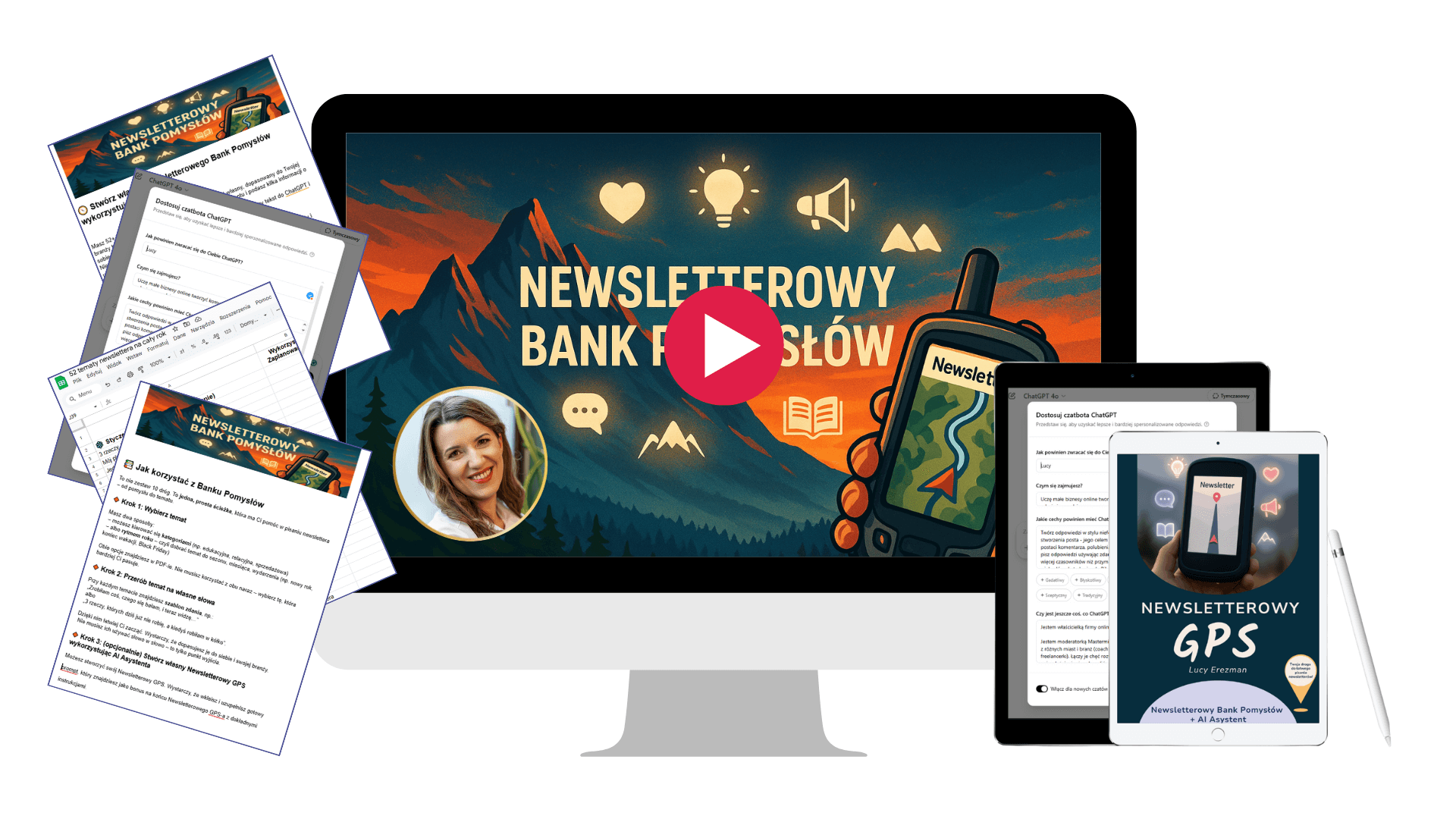 Aż tu nagle wpada mi w ręce Newsletterowy Bank Pomysłów – GPS od Lucy i dostaję olśnienia! Ogarniam trochę ChatGPT, ale to jak Lucy prowadzi krok po kroku i jakie potem ten skubany Chat daje mi podpowiedzi… to jest Game Changer mojego newslettera! Newsletterowy Bank Pomysłów od Lucy, to jest jak asystentka na sterydach! Serio.